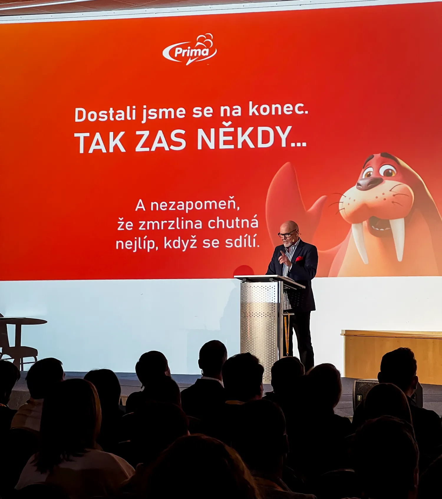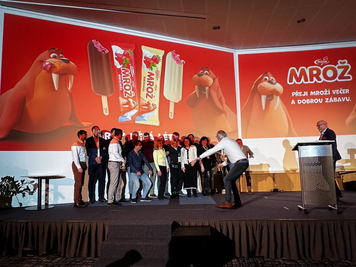 Součástí prezentace byly také nové reklamní spoty, které už teď budí velkou pozornost a naznačují, že Mrož vstupuje do nové sezóny ve velkém stylu. Milým momentem bylo přivítání Daleny Martiníkové – „Mroží mámy“, která recepturu tohoto legendárního nanuku před 30 lety vytvořila. I když je už v důchodu, konferenci si nenechala ujít – a její přítomnost byla pro řadu kolegů krásným překvapením.