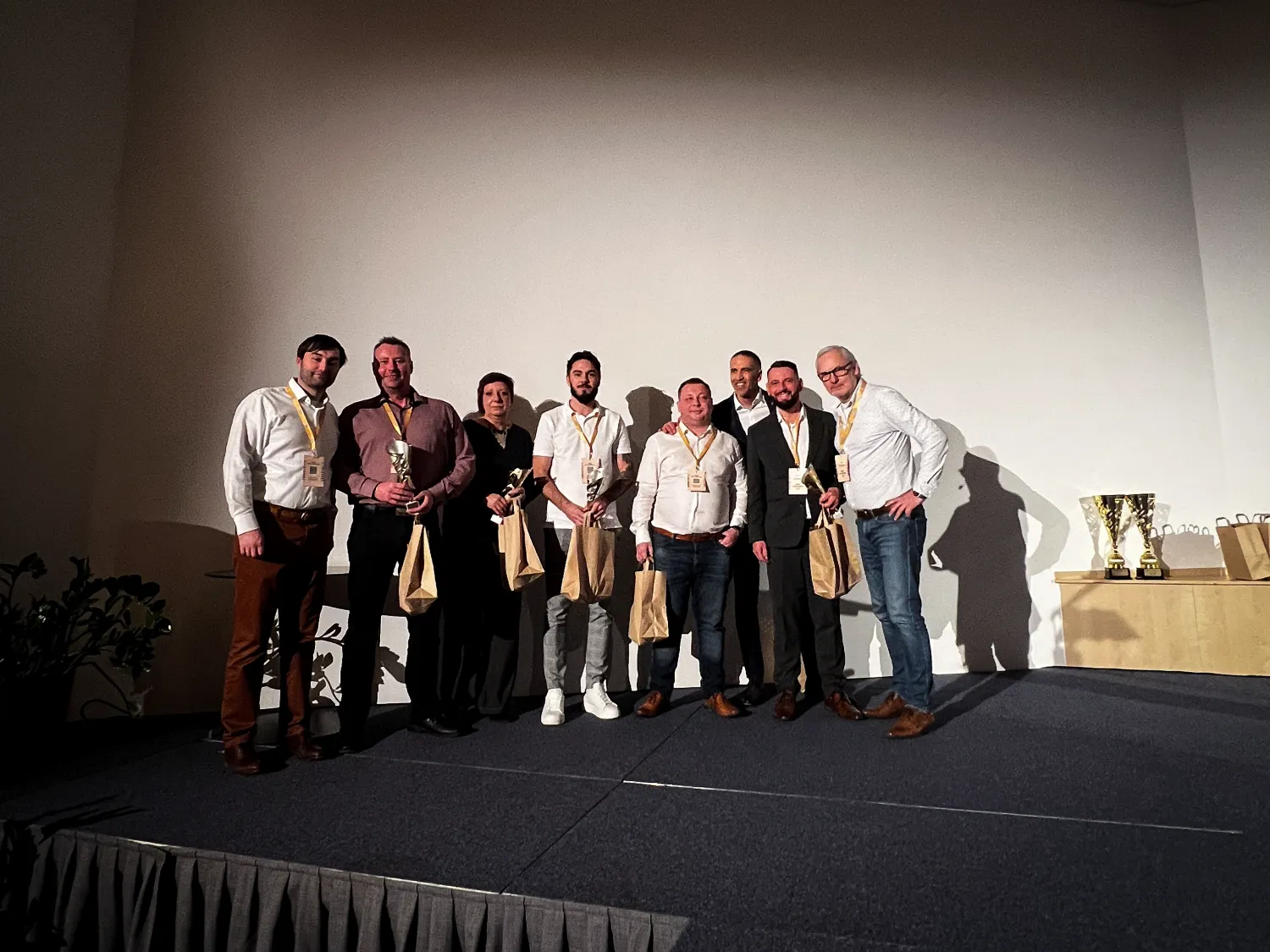 Večerní program jsme odstartovali vyhlášením nejúspěšnějších prodejců. Krásný pohár a zaslouženou odměnu si odneslo hned 15 kolegů – včetně příjemně zaskočeného maďarského vítěze a dvou operátorek zákaznického centra. Novinkou letošního ročníku bylo také vyhlášení nejúspěšnějších prodejních týmů: za retail si převzali velký putovní pohár členové pobočky 55MEZ (Velké Meziříčí) a za gastro 30PLZ (Plzeň). Všem oceněným znovu velice gratulujeme a děkujeme za předvedené výkony v uplynulém roce. A jak se u nás říká: Dneska rekord, zítra norma. Takže vykročme směle do další sezóny.