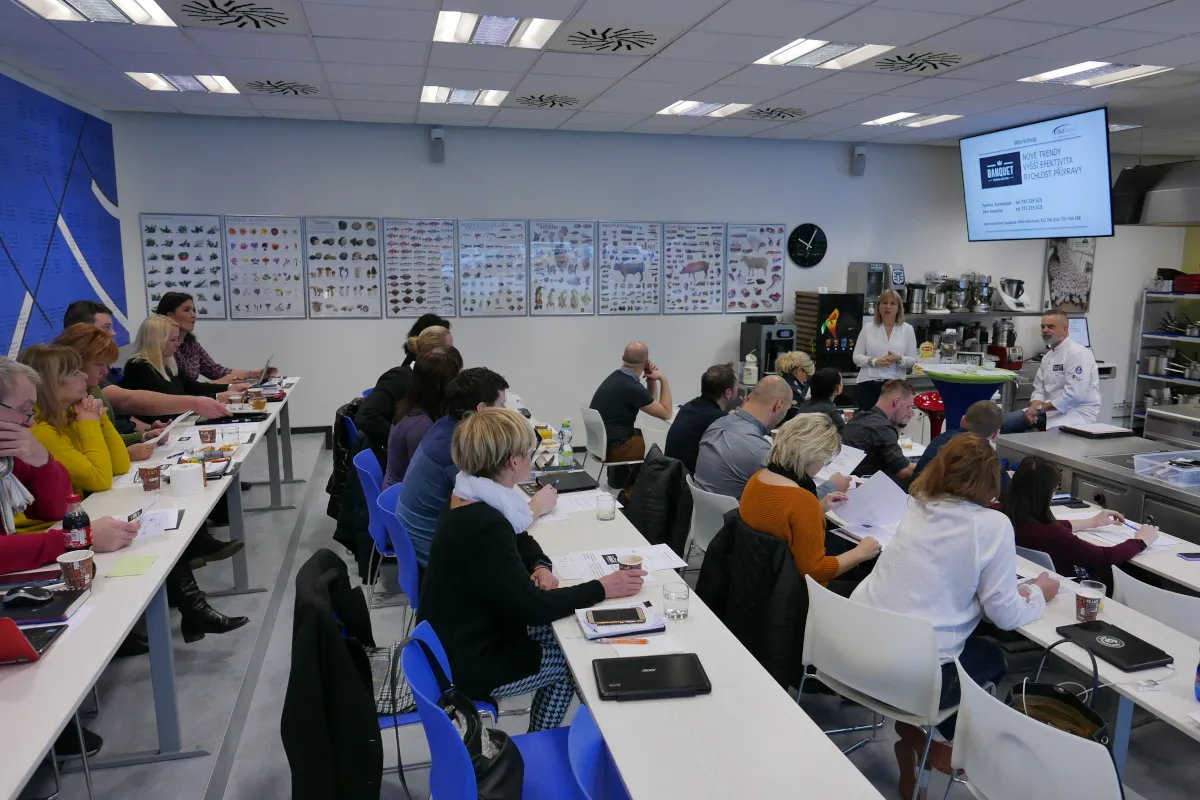 Obchodní zástupci pro gastronomii absolvovali praktický kurz přípravy pokrmů s použitím masa sous-vide Banquet. Díky takovým kurzům umí lépe poradit se stavbou menu nebo předat cenné tipy. Vyzkoušeli si přípravu pokrmů vhodných pro obyčejné hospody, jídelny i restaurace top hotelů.