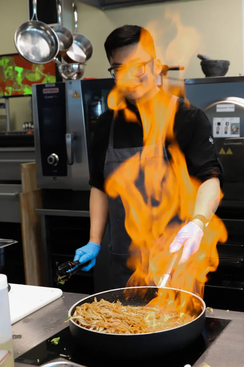 Závěr kurzu byl věnován technice wok, tedy rychlému preciznímu vaření na vysoké teplotě. Variace na tradiční chow mein (smažené nudle) nabídly prostor pro kreativitu i hravé kombinace surovin. Každý si odnesl nejen recept, ale především porozumění samotnému principu této oblíbené asijské metody.