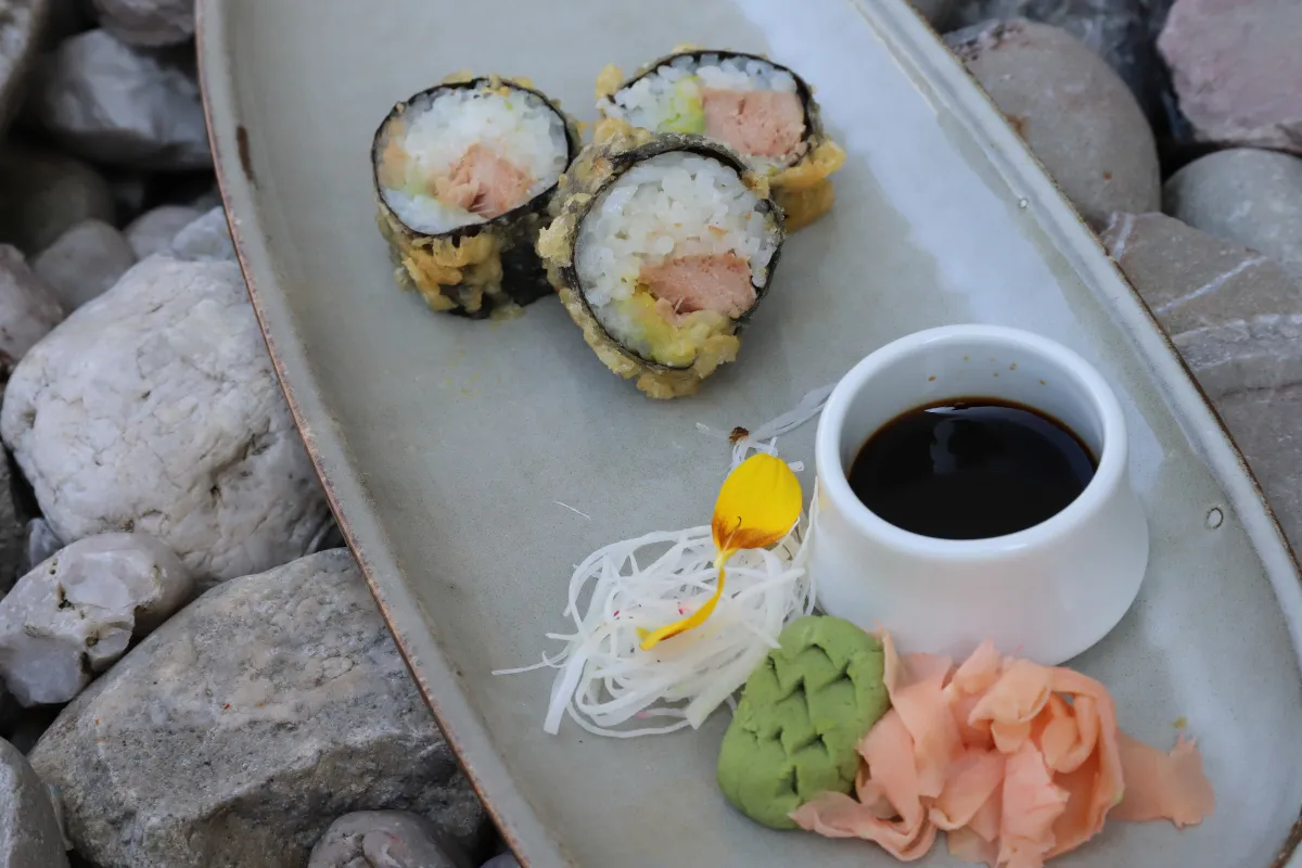 Úvod patřil křupavé sushi rolce plněné tuňákem. Pro zvýraznění chutí se rolka na několik vteřin ponořila do rozpáleného oleje a poté se podávala s nakládaným zázvorem (gari) a kvalitní sójovou omáčkou.