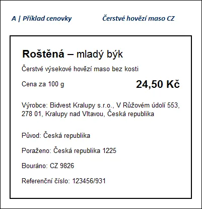 Společné údaje pro více druhů mas lze uvést formou společné cedulky. Etikety z vybaleného masa doporučujeme nevyhazovat a alespoň 14 dní je archivovat v nějakém šanonu.