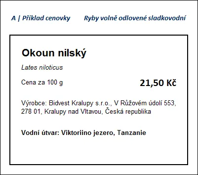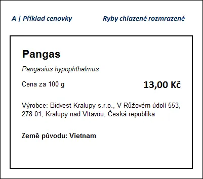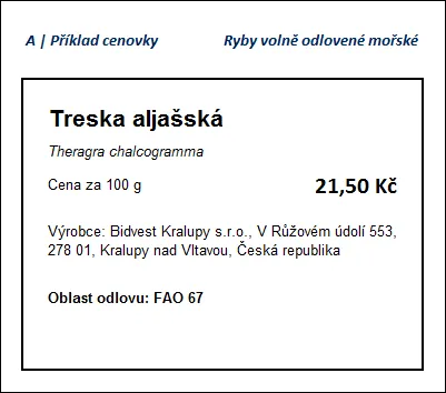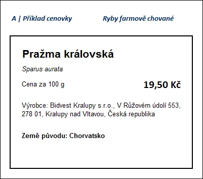 - Název potraviny. Součástí názvu ryb je i jejich latinský název (obchodní seznam ryb viz níže Příloha č. 11).