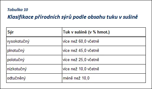 U sýrů se musí uvádět obsah tuku v sušině (nebo obsah tuku) a obsah sušiny.