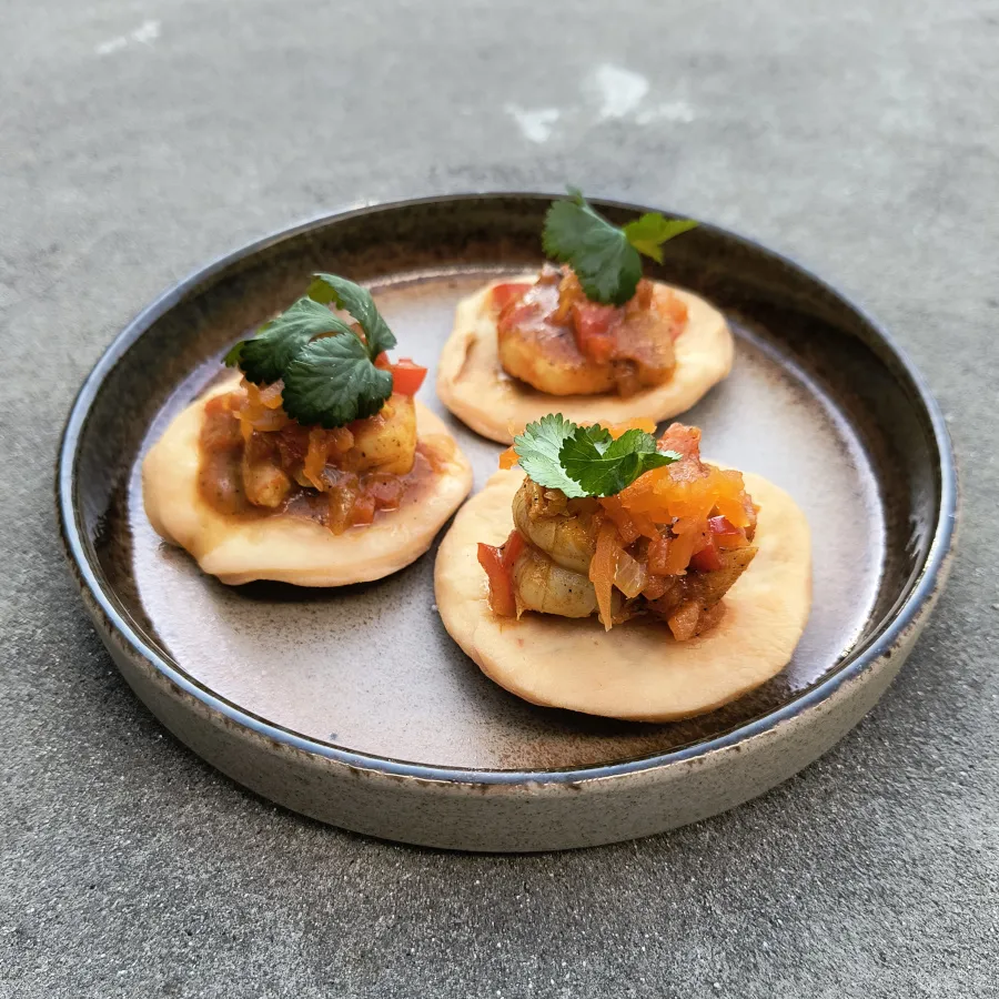 K rybím kuličkám připravil uznávaný šéfkuchař svěží omáčku s dvěma druhy ovoce, a to mangem a papájou. Na přikousnutí se servírovaly placky pappadum. Jde o tenké křupavé placky z fazolové či čočkové mouky. Indické přílohy jsou totiž také velmi pestré. Kromě chleba naan skvěle chutnají třeba i placky pooris, které mohli účastníci kurzu okusit v rámci předkrmu, kdy se na nich servírovaly krevety.