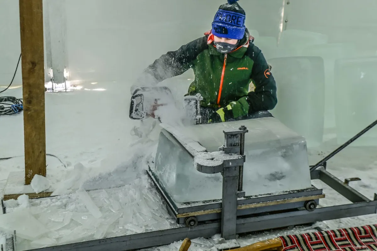 Led k vytvoření ledových soch na Pustevnách v Beskydech již tradičně připravuje a do výšky nad 1000 m n. m. dováží Bidfood. S výrobou zhruba 500 kvádrů o celkové váze 40 tun začal již v říjnu.