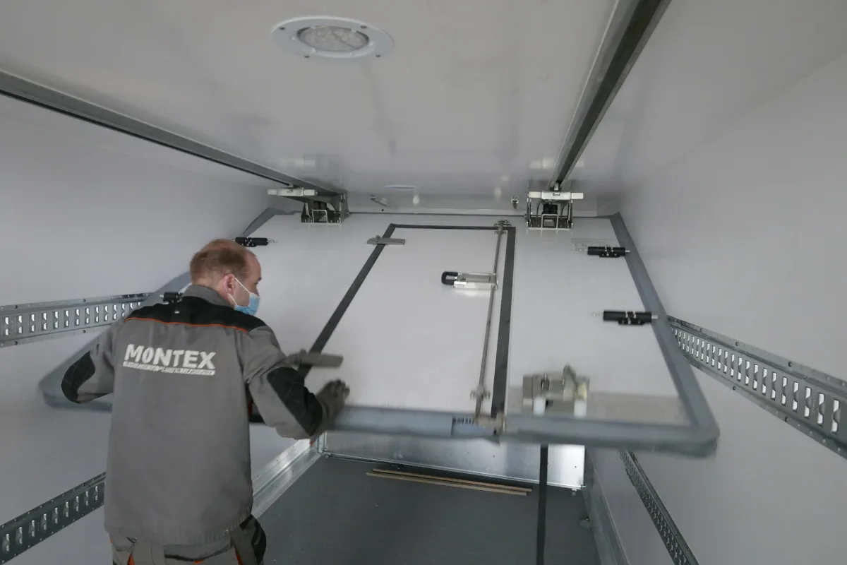 Fotografie z firmy Montex, kde se sestavují nástavby Lamberet z kitů vyrobených na zakázku ve Francii.