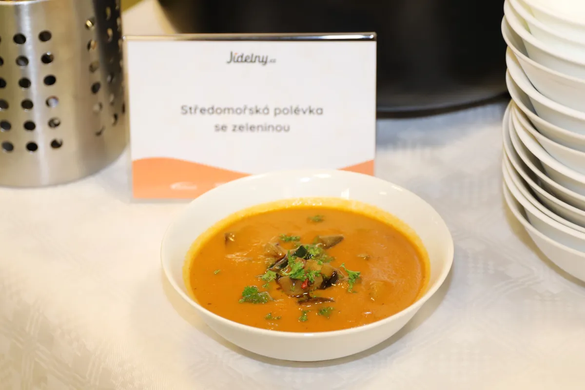 Středomořská krémová polévka skrývá rozmixované filé a zeleninu pro zahuštění. Přiznaná je předsmažená cuketa, lilek a paprika. Kombinace chutí ryb a grilované zeleniny je prostě dokonalá.