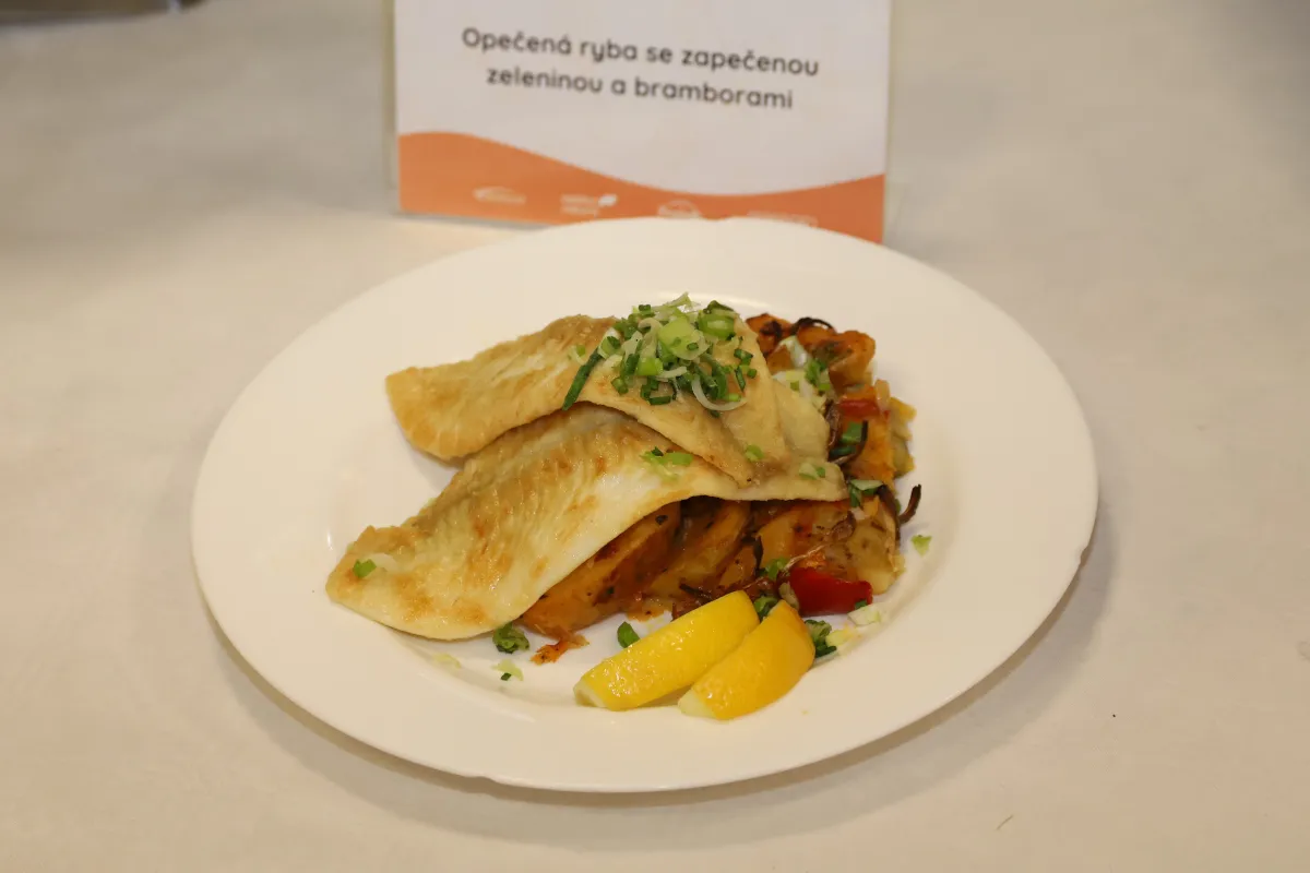 Filet z limandy je nejlepší volbou, pokud dětem vadí intenzivní rybí vůně. Limanda drsná patří k platýsovitým rybám, které se vyznačují jemným pevným masem bez typické chutě rybiny. Servírována byla se zapečenými americkými bramborami se zeleninou a sýrem.