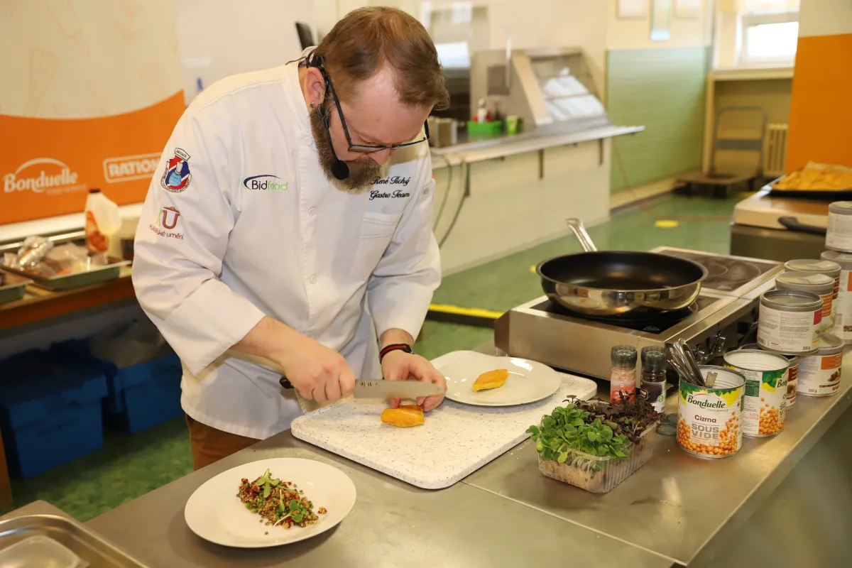 Kuchařky a kuchaři ze školních jídelen čerpají o jarních prázdninách inspiraci. 14 pokrmů, tipy a humor jim již tradičně přiváží šéfkuchaři z Gastro Teamů Bidfood a Bonduelle společně s kolektivem Jídelny.cz. Vyzkoušejte také rafinované pokrmy z ryb, luštěnin, zeleniny či zvěřiny.