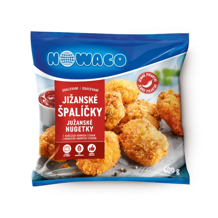 Úspěch kuřecích stripsů Nowaco nenechal zákazníky dlouho čekat na další drůbeží novinky: ostrou variantu Hot stripsy, americkou klasiku Jižanské špalíčky neboli kuřecí maso v jemně pikantní panádě a kuřecí řízky. Všechny již k dostání v každém dobrém obchodě.